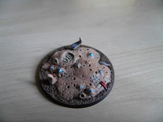 I've painted my formless thing, the monster I was showing you last time. It still needs some static grass, but I will apply that later one day when I get more mixes and some tufts and more things to apply it too, it gets really messy and I like to do it as much as possible on single occasion :P.